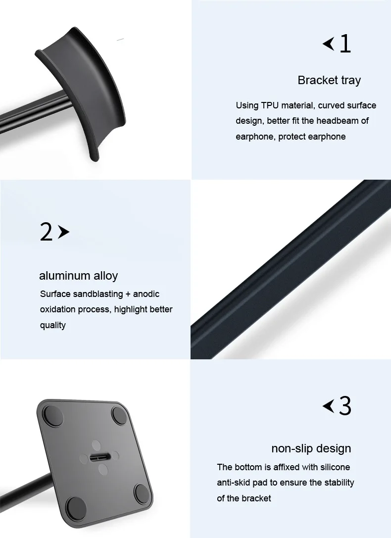 Preto e branco liga de alumínio suporte de fone de ouvido destacável suporte d